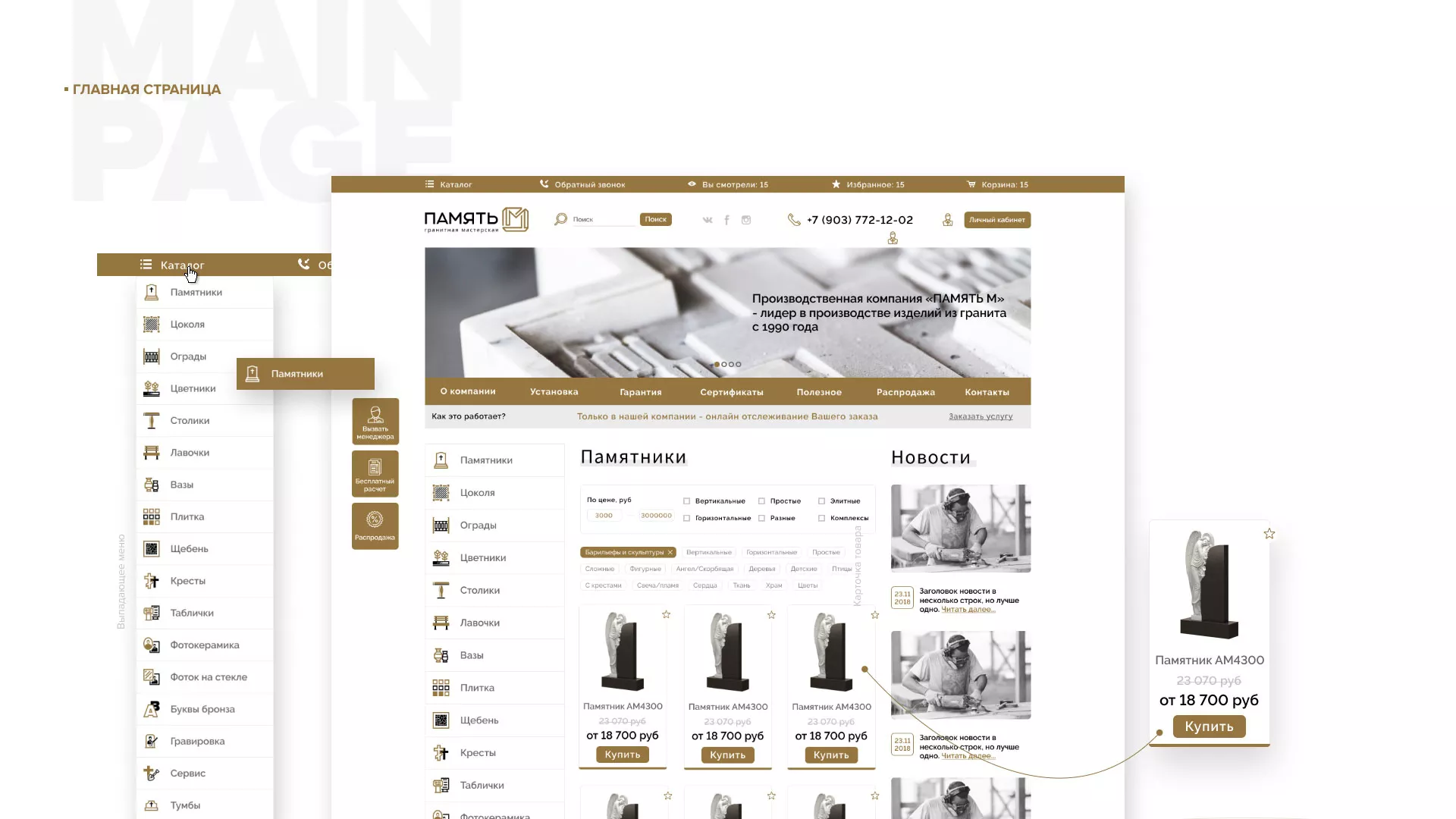 Разработка логотипа, фирменного стиля и сайта в Нелидово для компании «Память-М». Компания является предприятием по изготовлению всех видов надгробных сооружений: памятников, цоколей на могилу, оградок, столов, лавочек, ваз, балясин, плитки, мемориальных комплексов. Компании «Память-М» изготавливает все виды мемориальных изделий на собственном производстве в Нелидово.