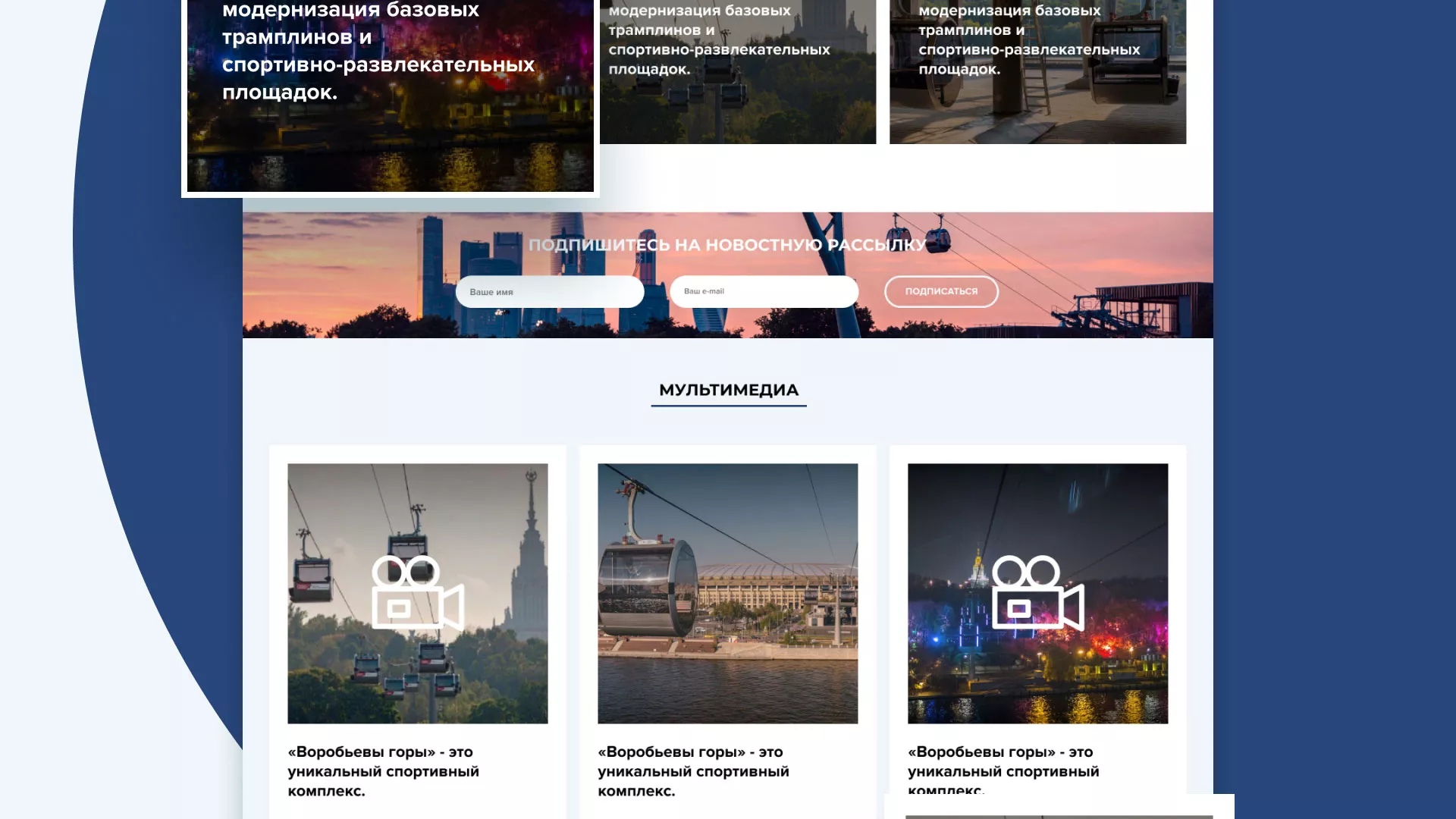 Разработка сайта в Нелидово для спортивно-развлекательного комплекса «Воробьёвы горы»